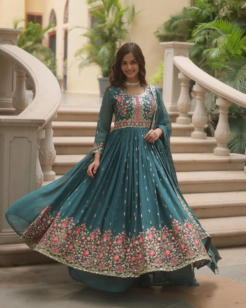 Chic Floral Faux Georgette Long Gown for Celebrations